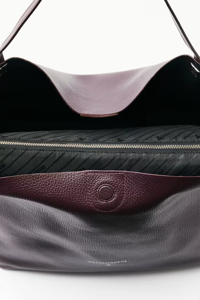 Minimalista e funzionale, la shopping bag Never Complete è realizzata in pelle conciata e strutturata con una texture raffinata al tatto. Morbida, capiente e leggera, è pensata per gli outfit urbani di tutti i giorni. I dettagli distintivi includono il logo “PATRIZIA PEPE FLY” sul davanti e una pochette rimovibile con ganci.