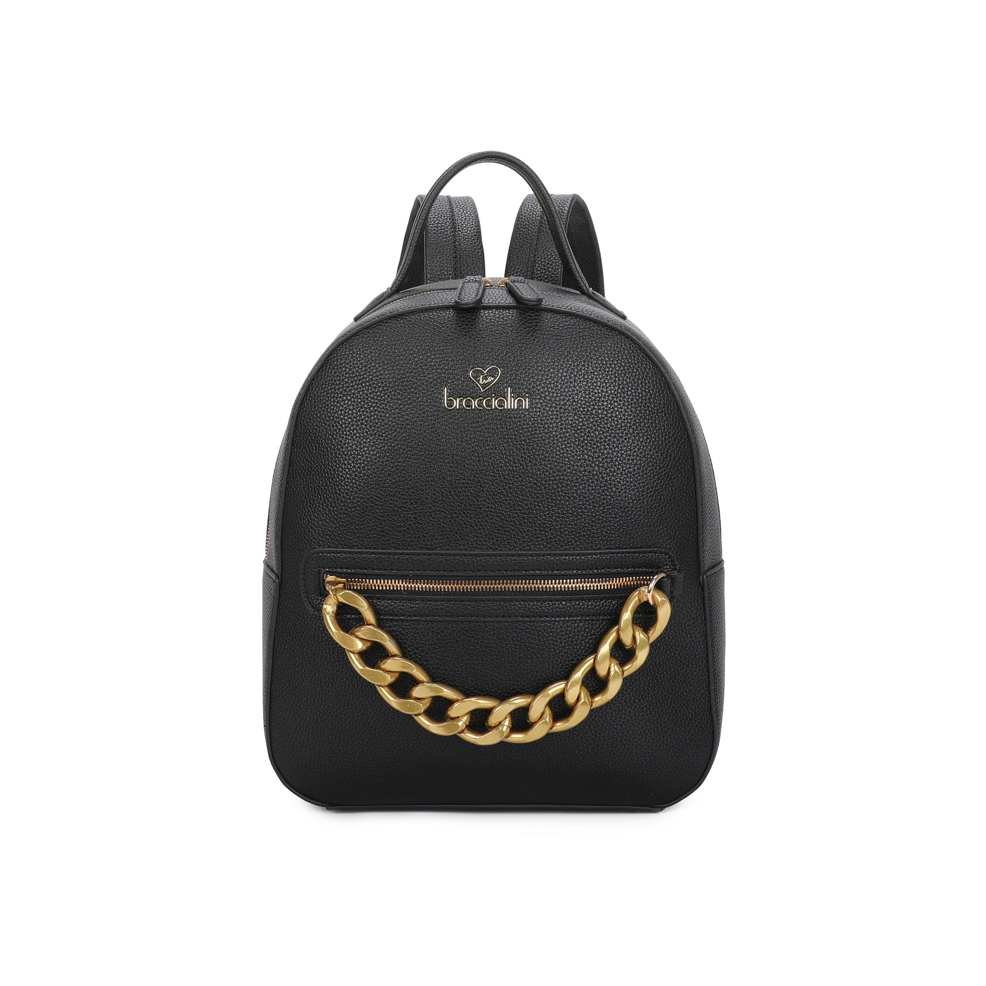 Zaino in similpelle, il design è impreziosito da una catena dorata removibile a maxi maglie, che aggiunge un tocco glamour e distintivo. Perfetto per un look urbano ma ricercato, unisce stile e funzionalità in ogni dettaglio.