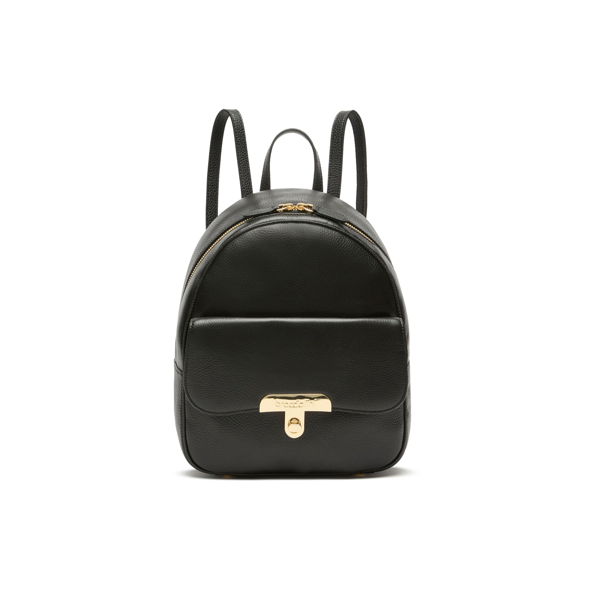 Zaino in morbida pelle di colore marrone dal design essenziale e raffinato. Compatto e funzionale, è dotato di tasca frontale con patta impreziosita da una chiusura girello dorata con logo inciso. Gli spallacci regolabili e il manico superiore ne facilitano l’utilizzo quotidiano, offrendo praticità senza rinunciare all’eleganza. Ideale per chi cerca uno stile sobrio ma curato nei dettagli.