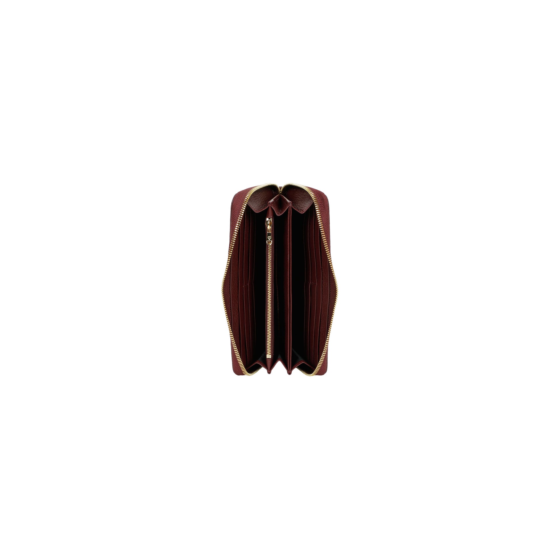 Portafoglio modello zip around in pelle , con logatura dorata frontale. Una tasca interna con zip per la moneta.